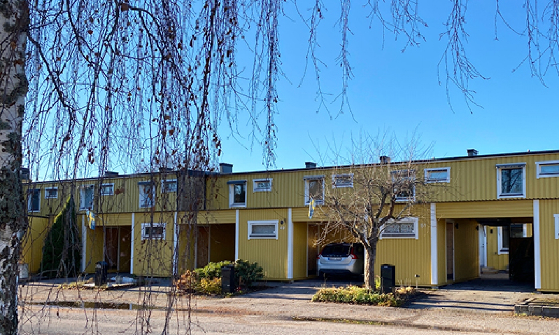 Föreningens tomt går ungefär 1 meter ut från våra planteringar, buskar eller plattsättningar på framsidan. Även den delen av vägen kommer att få ny asfalt. Kostnaden för det betalar föreningen. Eftersom vi fick veta att arbetena skulle starta nästa vecka, från en dag till en annan, kommer inte våra carportar, besöksparkeringar och ytan utanför tvättstugan att asfalteras om. Vi valde att prioritera vägen eftersom den är i sämre skick.